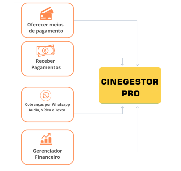 Com o Cinegestor, você emite notificações com link de cobrança e recebe o pagamento diretamente em sua conta, sem intermediações e taxas.
